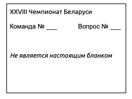 В тестировании вопросов нам помогали: команда «Страпелька» (Минск), команда «Кудрявчик и Вахривка» (Иркутск), Александр Пономарёв и команды «Хлопок одной шаньгой», «Огурец даёт прохладу», «Макс — любитель такс» (Пермь), Игорь Пятов и команды «Алгоритм» и «Smoking Snakes» (Алматы), Александр Печёный и команда «Оргия корги» (Москва), а также Герман Иванов, Дарина Миронова, Элина Пост, Георгий Талисайнен, Семён Лось, Артур Чугай (все — Таллинн) и Ирина Колесникова.