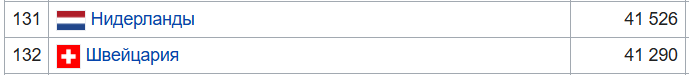 Перед вами — выдержка из Википедии со списком стран мира, в котором они расположены по убыванию площади. Несмотря на то, что Нидерланды в этой таблице стоят выше, через минуту вы услышите доказательство того, что на самом деле площадь Швейцарии больше. Какое слово пропущено в этом вопросе?