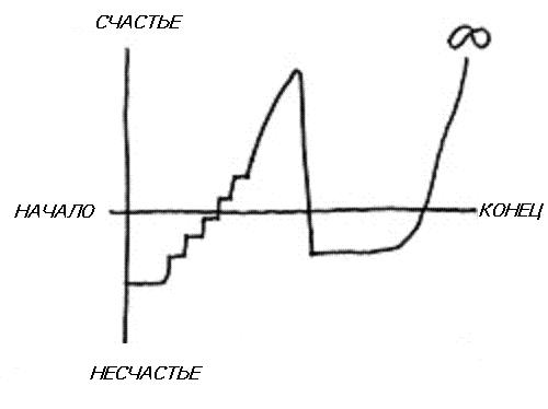 Курт Воннегут предложил изображать сюжеты литературных произведений с помощью графиков. Сюжет какого произведения Воннегут проиллюстрировал этим графиком?