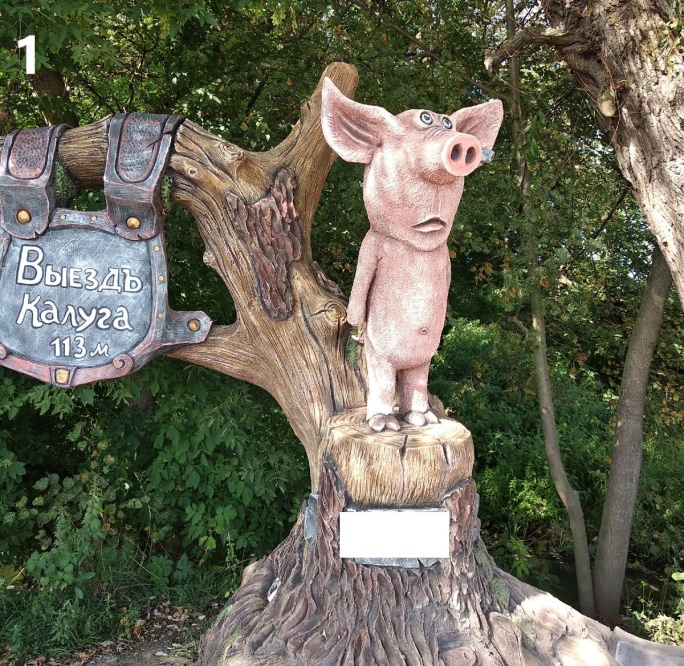 в Калужской области в городе Козельск находится парк «Вихляндия» музей современной ландшафтной архитектуры и пластического искусства в сказочном стиле. Некоторые инсталляции в этом парке снабжены забавными надписями.