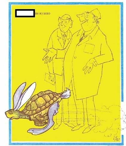 Перед вами карикатура Генриха Валька, высмеивающая зачастую бесполезную деятельность многих научно-исследовательских институтов советской эпохи. Скрытое от вас слово является неологизмом и находится в дательном падеже. Напишите его.