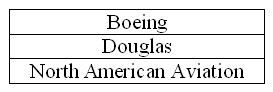 Однажды компании "Boeing" [бОинг], "Douglas" [дУглас] и "North American Aviation" [норс амЕрикэн авиЭйшн] получили крупный заказ на НИХ. Назовите ИХ одним словом.