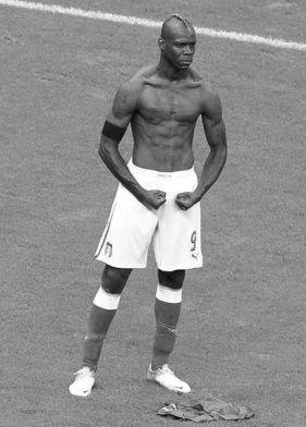 Марио Балоте́лли — известный футболист. Однажды, забив гол, он принял такую позу. В одной обработанной фотошопом версии этой фотографии Балотелли играет... во что?