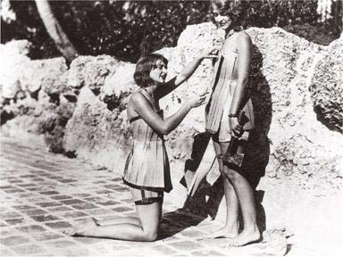 На розданной вам фотографии вы видите купальники, сделанные в 1929 году в рамках рекламной кампании одной американской промышленной фирмы. При их изготовлении использовался он. Напишите две буквы, которые мы пропустили в тексте вопроса.
