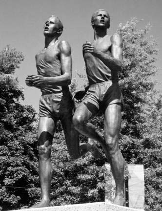 На фотографии — памятник, изображающий знаменитый эпизод забега между Роджером БАннистером и Джоном ЛЭнди, когда БАннистер обходит ЛЭнди справа. Увидев памятник, ЛЭнди посетовал, что запечатлён в момент, когда его застали врасплох, и сравнил себя с НЕЮ. Назовите ЕЁ двумя словами.