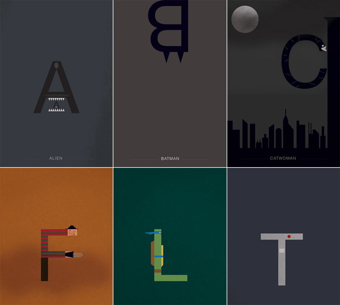 Перед вами работы дизайнера Рене Мамбембе из серии "Гельветика, мой герой", в которой на каждую букву латинского алфавита он нашел своего супергероя или злодея. Назовите персонажей, которым соответствуют три нижних изображения.