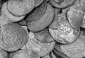 Перед вами очень тонкие средневековые монеты — арабские дирхемы. Сергею Березину эти монеты напомнили ИХ. Назовите ИХ двумя словами, начинающимися на одну и ту же букву.